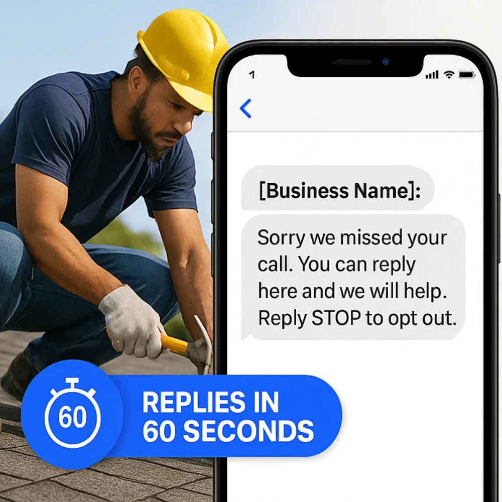 Within 60 seconds. When someone calls and you can't answer, they get an instant text with your message and booking link.